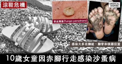 【步步為營】10歲女童因赤腳行走令腳板底感染沙蚤病,穿皮潛蚤在皮膚小洞可產卵約100顆,穿涼鞋人士要小心。